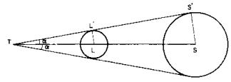 isto é, os raios do Sol e da Lua estão entre si como as distancias TS e TL respectivamente. Mas, pelo que vimos anteriormente.