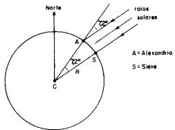 Alexandria, os raios solares caiam inclinadamente, fazendo um ângulo aproximado