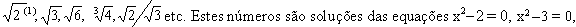 chamados de irracionais transcendentes. Estes não são raízes de equações