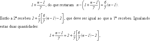 tomaria 3 pérolas e 1/7 do restante; e assim, sucessivamente, agiriam