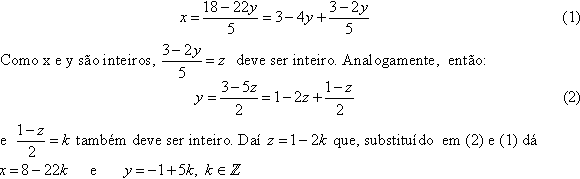 mdc(5, 22) = l, a equação tem solução. Podemos escrever