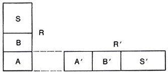 Na construção acima, a altura de R deve ser menor do que o dobro da altura de R'. Se a altura do retangulo R contiver a altura de R' duas ou mais vezes, recairemos no caso anterior marcando no retangulo R (cuja altura é a maior) vários retângulos de altura igual à de R', tantos quantos sejam necessários, até que a altura do último retangulo, S, seja menor do que o dobro da altura de R' (ver figura a seguir).