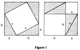 Dado um triângulo retângulo com hipotenusa c e catetos a, b, decompor o quadrado de lado c num número finito de polígonos que, reagrupados, formem um quadrado de lado b e outro de lado a.