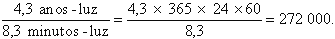 Isto mostra que essa estrela está distante de nós 272 000 vezes mais que o Sol. Assim, se o Sol estivesse a 1 metro de distância da Terra, a estrela mais próxima estaria a 272 km de distância! E Copérnico pensava que as estrelas estivessem 400 vezes mais longe de nós que o Sol...