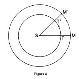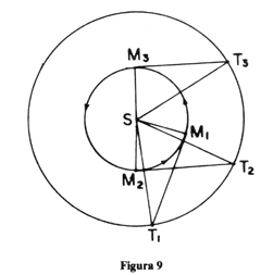 Com esse mesmo raciocínio, Copérnico calculou os períodos siderais dos demais planetas superiores conhecidos em seu tempo, Júpiter e Saturno. Sugerimos que o leitor faça esses cálculos, sabendo que os períodos sinódicos desses planetas são 399 dias e 378 dias respectivamente. Os períodos siderais correspondentes serão, aproximadamente, 11,8 anos e 29,5 anos respectivamente. Um raciocínio parecido permite calcular os períodos siderais dos planetas inferiores, o que faremos no Apêndice adiante.