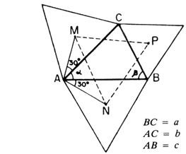 No rodapé da p.31 da RPM 4, consta o seguinte enunciado: '' Tome um triângulo arbitrário. Com base em cada um dos seus lados, construa (externamente) um triângulo equilátero. Os centros desses 3 triângulos equiláteros são ainda vértices de um triângulo equilátero." A professora Erika B. Ledergerber-Ruoff em seu livro "Isometrias e Ornamentos no Plano Euclidiano", p.128, Atual Editora, demonstra, usando isometrias, este teorema, além de outros de mesma beleza. Não reproduzirei essa demonstração mas darei outra, utilizando conceitos básicos de Trigonometria.