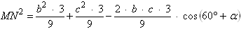 aplicaremos a Lei dos Cossenos ao triângulo AMN, lembrando que