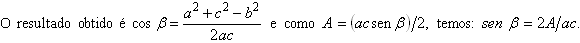 Aplicando a Lei dos Cossenos ao triângulo ABC para o ângulo