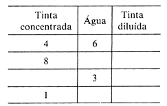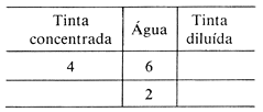 — Apresentar aos alunos o problema: Para preparar a tinta, um pintor mistura, a cada 4 latas de tinta concentrada, 6 latas de água. Quantas latas de água são necessárias para dissolver 8 latas de tinta? De início, os alunos são deixados livres para resolver e discutir o problema. Depois, para melhor explorar a situação, o professor faz outras perguntas sugeridas pela tabela abaixo:
