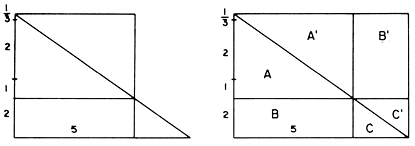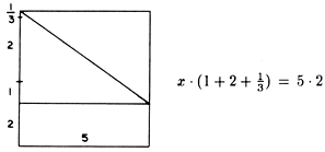 Euclides realiza muitas construções semelhantes a estas nos Elementos, utilizando-se somente de uma régua e de um compasso. Além disso a régua não tem qualquer tipo de marcação, nela não está assinalado nenhum milímero, nenhuma medida. Euclides e os antigos matemáticos preocupavam-se apenas com as relações que podiam obter geometricamente. Para eles, os cálculos e as medidas eram para serem efetuados unicamente por escravos. Um problema simples como este, formulado pelos matemáticos egípcios, há cerca de 4 000 anos: