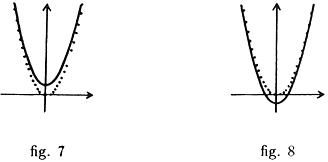 1.1 para a > 1, tomos ax2 > x2 e, portanto, o ponto (x,ax2) está acima de (x,x2), na mesma reta vertical. Isto significa que o gráfico de f está acima de y = x2, exceto na origem (fig.3). 1.2 para 0 < a < 1, temos ax2 < x2 e, portanto, o ponto (x,ax2) está abaixo de (x,x2), na mesma reta vertical. Isto significa que o gráfico de / está abaixo do gráfico de y=x2, exceto na origem (fig. 4).
