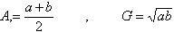 Por exemplo, se a = 2 e b = 8, obtemos A = 5 e G = 4.