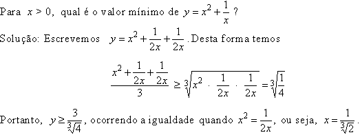 Solução: Aplicando a desigualdade das médias aos números x e l / x, obtemos
