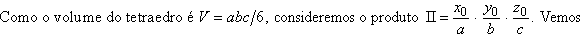 Problema 2. E dado um ponto P no interior de um triedro tri-retângulo. Como devemos construir um plano que passe por P e que determine um tetraedro de volume mínimo?