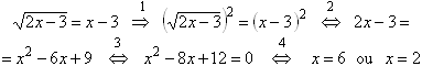 Estes fatos aparecem nitidamente quando, no final do 1° grau, resolvemos com nossos alunos as equações irracionais. Vejamos um exemplo: Resolver