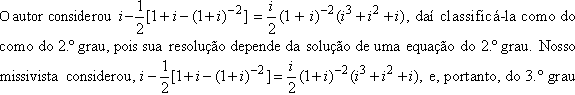p.15, afirma que esta equação é do 2.° grau e um aluno do curso de