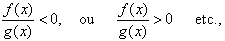 E sabido que a regra dos sinais para a divisão é a mesma que a regra dos sinais para a multiplicação. Por isso, o método aqui exposto para resolver ineqüações-produto pode ser aplicado para resolver ineqüações-qüociente do tipo