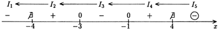 Finalmente, a ineqüação g(x) < 0, que é equivalente à ineqüação dada, tem como conjunto solução a união dos intervalos I2 e I4: