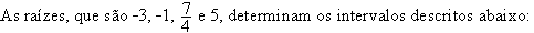 f(0) < 0 (três fatores negativos). Logo, f(x) é negativo em I3. Então, aplicando os teoremas 1 e 2:
