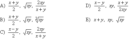 A) 11 B) 13 C) 15 D) 17 E) 19 31. Assinale a proposição falsa: A) Se dois números positivos têm soma igual a 16, então sua média aritmética é igual a 8. B) Se o produto de dois números positivos é igual a 16, então sua média geométrica é igual a 4. C) Se dois números positivos têm soma igual a 16, então sua média geométrica é menor ou igual a 8. D) Se o produto de dois números positivos é igual a 16, então sua média aritmética é maior ou igual a 4. E) Não existem dois números positivos que têm simultaneamente soma igual a 16 e produto igual a 16. 33. Em dado momento, dois objetos A e B tinham o mesmo preço. O preço de A sofreu um aumento de 25% e, em seguida, outro aumento de 80% sobre o novo preço. O preço de B sofreu um aumento de x% e, em seguida, outro aumento de x% sobre o novo preço. Os preços finais dos dois objetos resultaram iguais. O valor de x é: A) 45 B) 50 C) 52,5 D) 55 E) 60