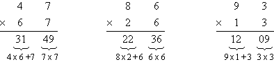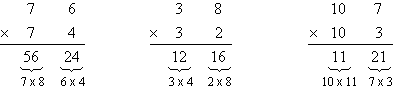 Hideo Kumayama, analisando um livro didático japonês, encontrou o seguinte algoritmo para calcular, por exemplo, 76 x 74, 38 x 32, ou 107 x 103: