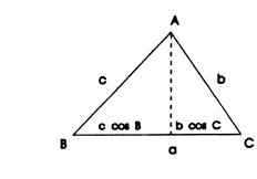 onde a, b, c, A, B, C são os lados e ângulos respectivos de um triângulo. Essa fórmula pode ser visualizada facilmente e diz apenas que o lado a é a soma (ou a diferença, se B ou C for obtuso) das projeções ortogonais dos lados b e c sobre o próprio a, como se vê na figura ao lado. Por outro lado, é também bastante conhecida a lei dos senos em um triângulo, segundo a qual: