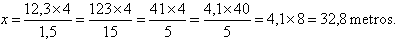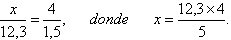 A aproximação de valores numéricos, como fizemos acima no caso do ângulo (que foi propositadamente ajustado em 7,2 para facilitar os cálculos), é um procedimento que ajuda a obter estimativas rápidas e é freqüentemente usado em cálculo numérico: muitas vezes pequenas mudanças nos dados simplificam consideravelmente os cálculos. Problema 6. Uma rampa — como a que dá acesso ao Palácio do Planalto, em Brasília — tem 4 metros de altura na sua parte mais alta. Tendo começado a subi-la, uma pessoa nota que, após caminhar 12,3 metros sobre a rampa, está a 1,5 metro de altura em relação ao solo. Calcule quantos metros a pessoa ainda deve caminhar para atingir o ponto mais alto da rampa. Resolução. Uma simples figura nos mostra que, sendo x o comprimento total da rampa, vale a proporção: