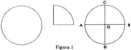 Figura 1: Com o disco de papel determinamos facilmente dois diâmetros perpendiculares AB e CD e assinalamos o centro O.