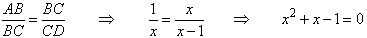 Note que os triângulos ABC e BCD são semelhantes porque possuem os mesmos ângulos internos. Daí,