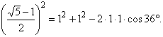 Vamos agora usar a lei dos cosenos no triângulo ABC para calcular cos 36°: