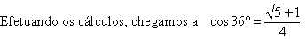 feitos, o ângulo de 36° apareceu através do seu co-seno. Como sabemos que