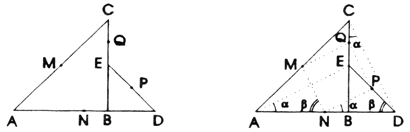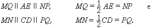 Solução: Como M, N, P e Q são, respectivamente, os pontos médios de AC, AD, DE e EC, temos: