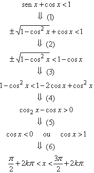 Um colega de Jacarezinho, PR, resolveu a inequação sen x + cosx < 1 de dois modos e obteve respostas diferentes. Veja: