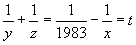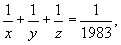 1983, a soma de seus inversos seria menor do que 1/1983). Seja x < y < z e x