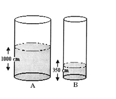 A altura da água em A é 1000cm e em B, 350cm. Utilizando uma bomba, transferimos água de A para B. Nota-se, no recipiente A, a altura da água diminui 4cm por minuto e em B aumenta 9 cm por minuto.