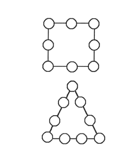(b) Neste desenho, há agora quatro casas em cada lado do triângulo. Justifique por que não é possível colocar um número natural em cada casa de modo que a soma dos números em duas casas adjacentes seja sempre ímpar. (c) Desenhemos agora um polígono de 51 lados e em cada lado coloquemos 50 casas, tomando o cuidado de que em cada vértice fique uma casa. Será possível colocar um número natural em cada casa de modo que a soma dos números de duas casas adjacentes seja sempre ímpar? Por quê?