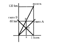 hora, que significa que a mosca percorreu 120/3 = 40 km até encontrar o