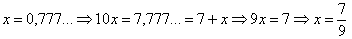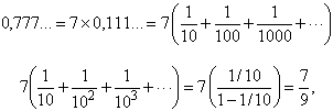 sendo a segunda igualdade obtida da fórmula da soma dos termos de uma progressão geométrica infinita. Quando se ensinam essas dízimas, usa-se o seguinte procedimento, no qual a soma infinita não aparece explicitamente: