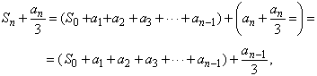 Mas Arquimedes não soma dessa maneira todos os termos de uma série infinita. Para entender o que ele faz, seja Sn = S0 + a1 + a2 + a3 + . . . + an. Como an = an-1/4, ou 4an = an-1, temos: