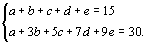 daí, usando a primeira equação, chegamos a 15 + (2b + 4c + 6d + 8e) = 30