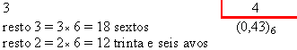é, na base 6, a fração 3/4 se escreve como 0,43, ou seja: 4 sextos e 3