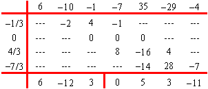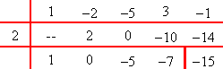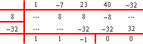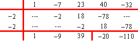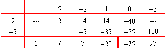 algoritmo de Briot-Ruffini, na última linha temos os coeficientes do