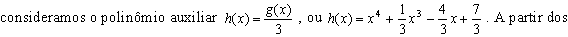 Esse critério será de difícil aplicação quando o termo constante da equação possuir muitos divisores. No entanto, ele pode ser transformado num eficiente e simples programa de computador para a determinação desse tipo de raiz. Para o leitor que tiver se interessado por este exemplo, deixamos como exercício a resolução da equação