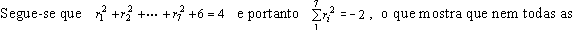 não pode ter todas as raízes reais. Solução: Sejam r1, r2, . . . , r7 as 7 raízes da equação. Temos então: r1, r2, . . . , r7 = 2 r1r2, r1r3, . . . , r6r7 = 3