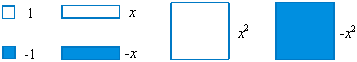 de peças coloridas de cartolina, de expressões algébricas do primeiro e