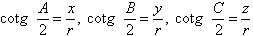 Chamando, agora, de p o semiperímetro do triângulo ABC, têm-se x + y + z = p e a