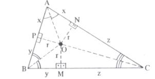 AO, BO, CO bissetrizes internas e M, N, P, respectivamente os pés das