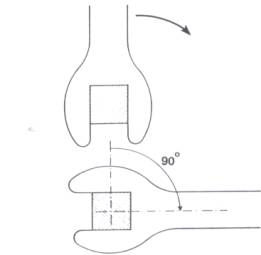 Deste modo com quatro giros de 90° a rosca dá um passo. No