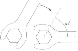Com o parafuso sextavado completamos um passo da rosca após seis giros de 60° cada um.