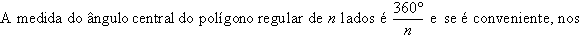 Quando um mecânico está concertando um defeito qualquer numa máquina, por exemplo, um automóvel, muitas vezes ele tem pouco espaço para trabalhar (em geral em posições desconfortáveis). Por esta razão, dos três parafusos apresentados, o mais cômodo é o hexagonal, pois é o que pode ser apertado ou desapertado com giros menores (60°), isto é, com movimentos mais curtos do braço. Observe que este ângulo de giro a que estamos nos referindo é o ângulo central do polígono regular.